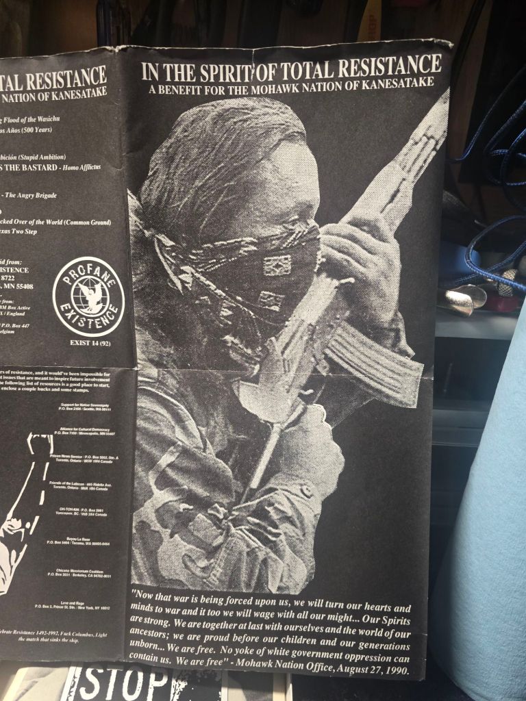 This was a compilation punk 7″ from the early 90’s to support the Mowhawk native American Resistance against the Mexican government. This is a lesson on what needs to happen in the United States.