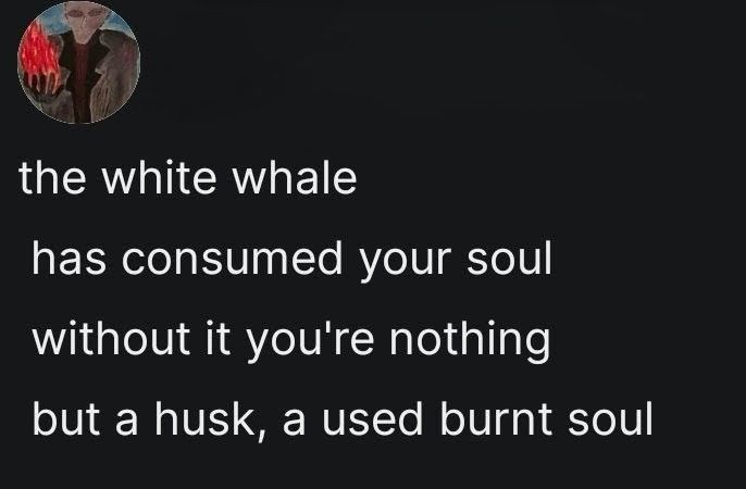 I have no white whale to consume my soul, I am that white whale. Born a beast a monster: failures, oppression, hurt, murder, rape, death, genocide, femicide, and even your internal misery. I am your enemy i am your monster.