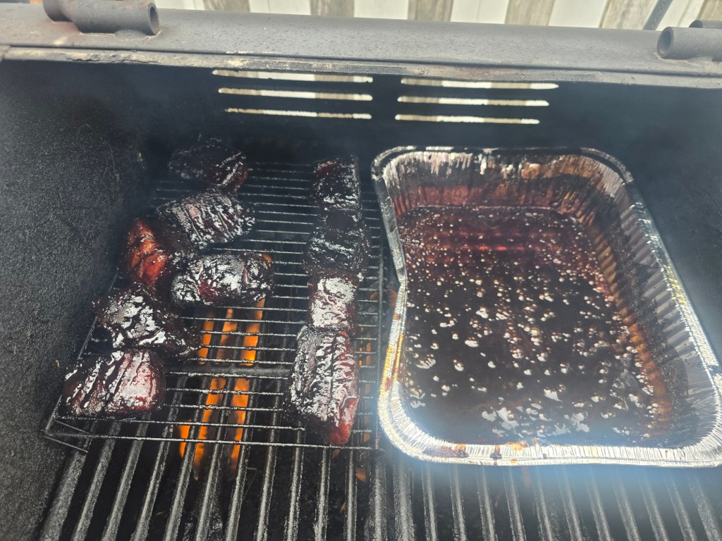Finishing on gas. The BBQ is Japanese-esqu. Used hickory and apple wood.