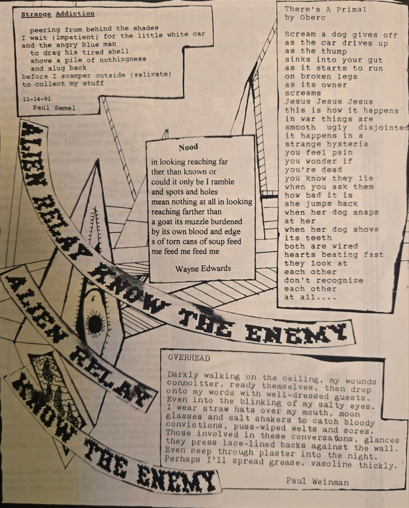 My network & correspondence with writers, poets, & artists was growing, not just in the punk/hardcore subculture, but in the writing underground scene as well, still everything done by snail mail.