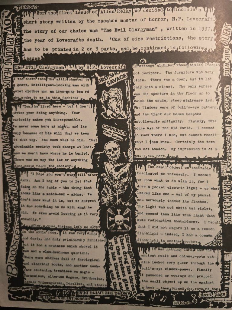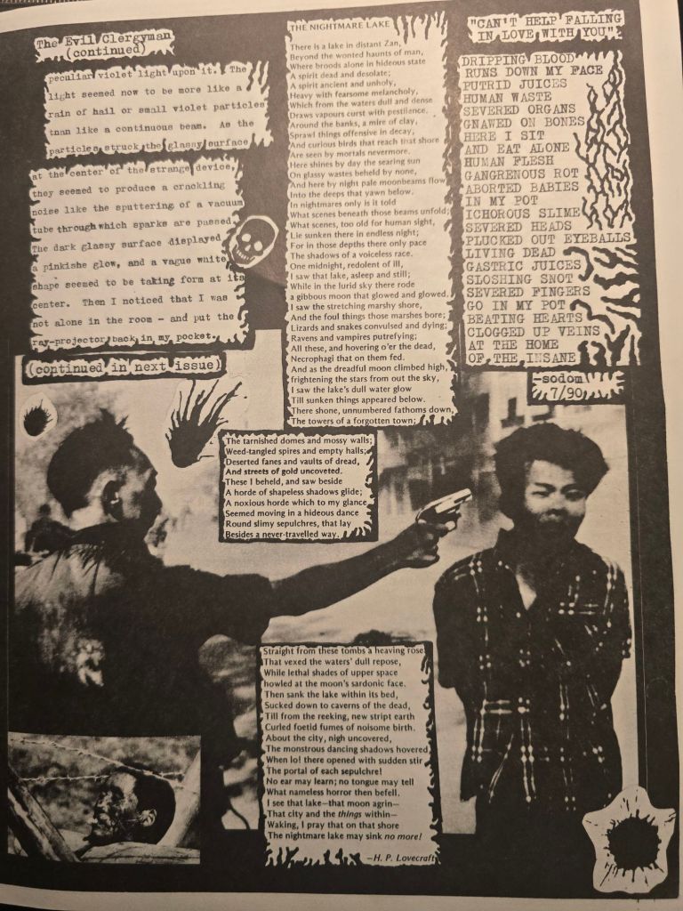 The horror element was definitely front and center, Dave who was co-editor was big into the Evil Dead & HP Lovecraft, I was more music and writing orientated.